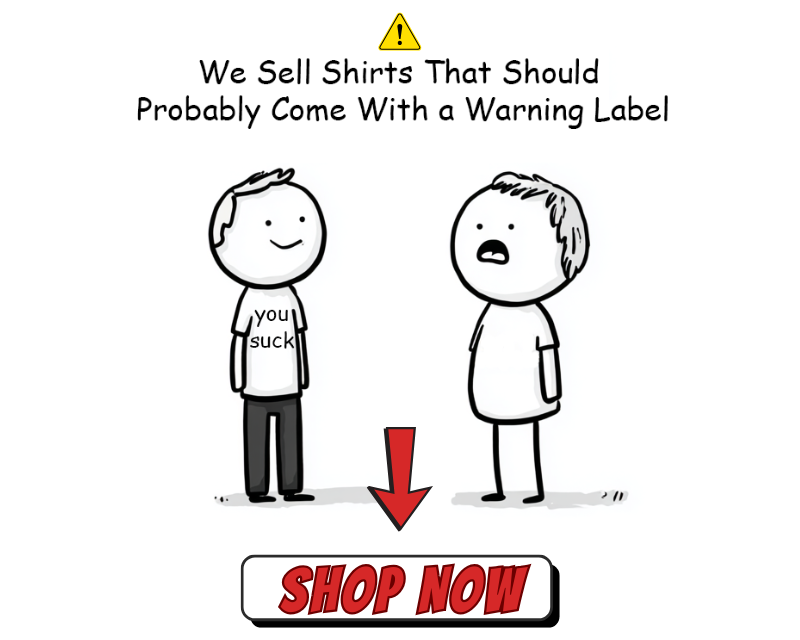 If your tee doesn’t make you laugh, gasp, or immediately question your morals… we’ll make it right. We stand by our shirts like your uncle stands by conspiracy theories — 100%.